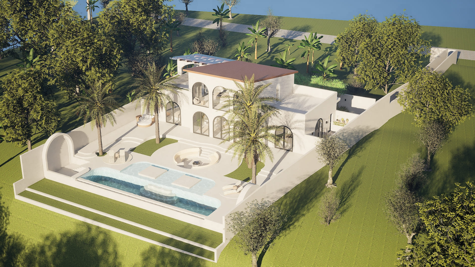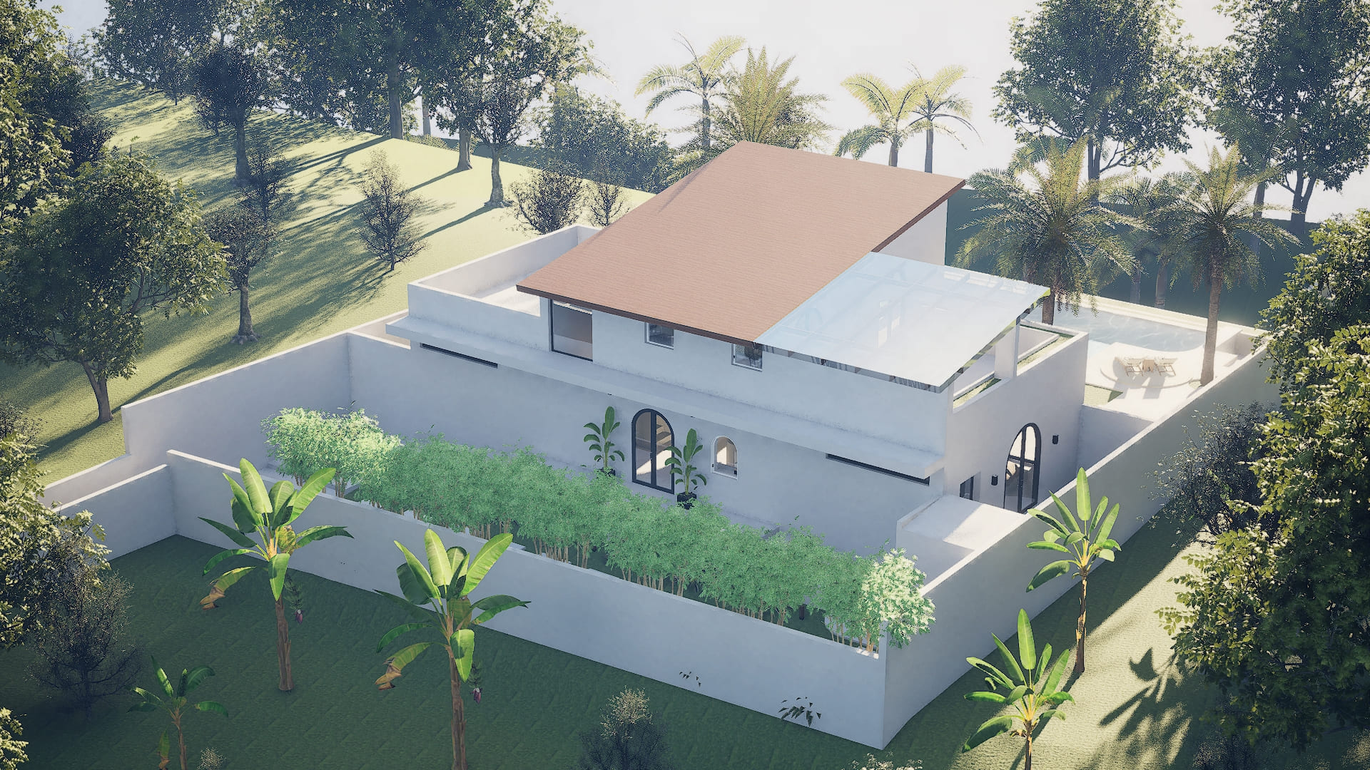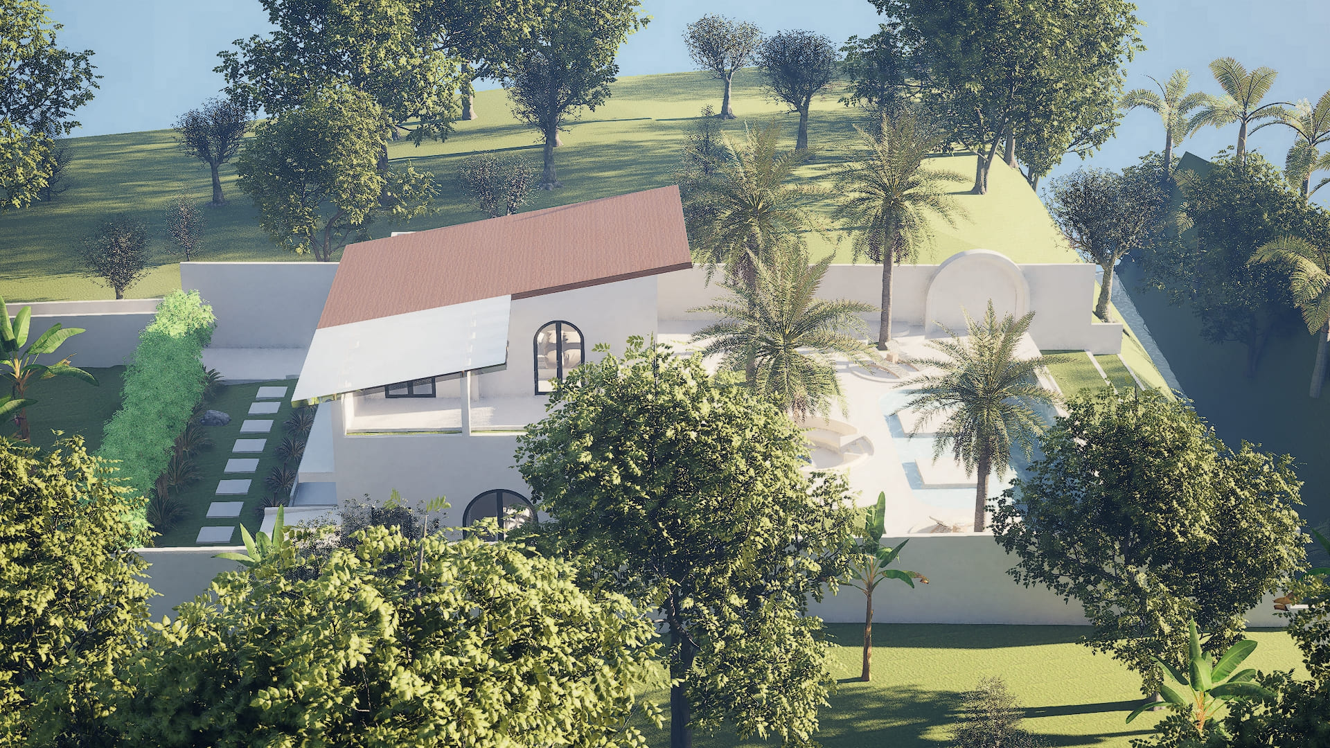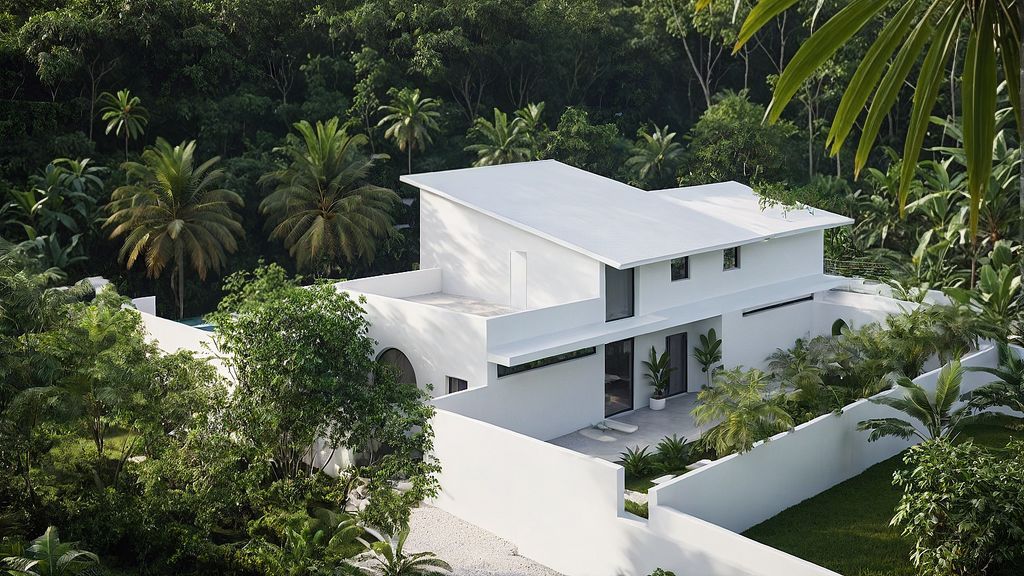 A villa architecture project in Kemenuh, Bali, set on a 230-square-meter residence with a 350-square-meter private garden, featuring 3 spacious bedrooms, a private pool, and panoramic jungle views. The design blends modern tropical style with the natural surroundings, creating a serene living experience where indoor and outdoor spaces flow seamlessly.