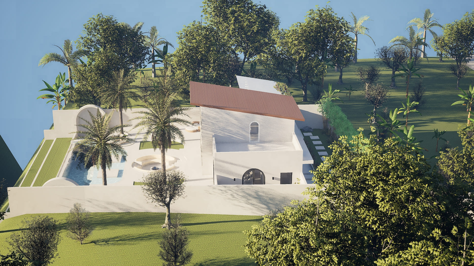 A villa architecture project in Kemenuh, Bali, set on a 230-square-meter residence with a 350-square-meter private garden, featuring 3 spacious bedrooms, a private pool, and panoramic jungle views. The design blends modern tropical style with the natural surroundings, creating a serene living experience where indoor and outdoor spaces flow seamlessly.