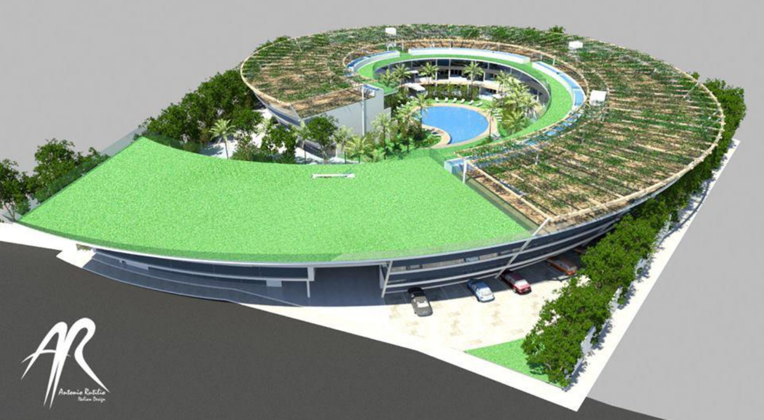 This residential project in Mexico, named Viva Spirale, features 36 luxury apartments, 1 restaurant, 1 swimming pool, 1 bar, a social area, a commercial area, and a total built area of 9,000 sqm.